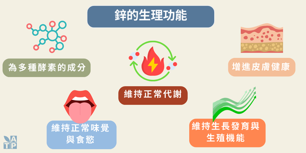 「鋅」是人體內含量僅次於鐵的微量元素,也是人體代謝和生長中不可或缺的營養成分,尤其影響男性生殖系統的運作。鋅的攝取量若不足可能導致食慾不振、營養不良、傷口癒合緩慢和性功能減退等問題。