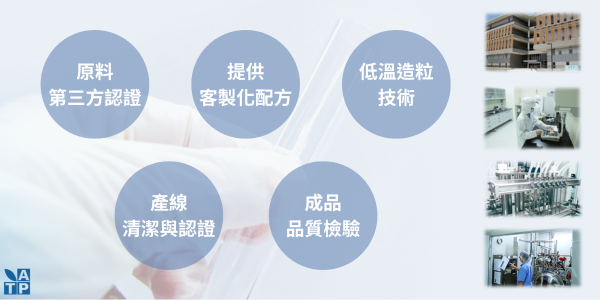 原料素材眾多,若您想深入了解歡迎參考「研發配方」和「嚴選素材」頁面,或直接與我們聯繫!